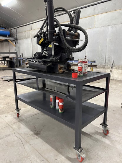 -Etabli de démontage, table de travail avec réceptacle de récupération des fluides.